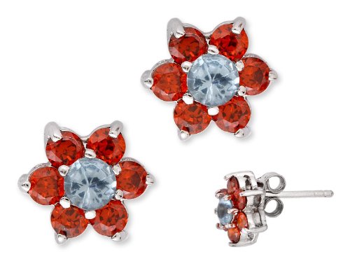 Here are some of the great features of ClassicDiamondHouse Round Simulated Ruby Blue Topaz Center Beautiful Flower Stud Earrings