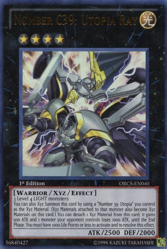 Yu-Gi-Oh - Number C39, Yu-Gi-Oh! - Number C39: Utopia Ray # 40 - Order of Chaos - 1st Edition - Ultra Rare. Yu-Gi-Oh! is a strategic trading card game in which players draw from a deck of cards forming a hand and take turns playing cards on a field. Each player has a deck of 40-60 cards, along with an Extra Deck containing up to 15 Fusion, Synchro or Xyz Monster cards. The aim of the game is to use a variety of Monster, Spell and Trap cards to reduce your opponent's Life Points to zero.