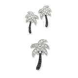 Shop4Silver QST226SET, Sterling Silver Black & White CZ Palm Tree Slide Pendant and Post Earrings (Polished) ...